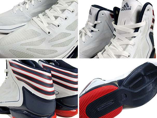 シカゴブルズのエース、デリック・ローズ着用、アディダスのやばすぎるかるい業界最軽量CrazyLightの新モデルADIZERO CRAZY LIGHT 2に、ロンドンオリンピック記念カラーが登場!!スプリント・ウェブアッパー構造=TPUをナイロン素材の基盤とシームレスに一体化したモデルで、ウェブ状のレイアウトは縦方向と横方向それぞれの力を強化しています!!スプリント・フレームアウトソール構造=外部ヒールカウンターを非対称のトルション・システムと合体させ、軽量化・エネルギー回復・動きのコントロールをそれぞれ最大級に向上させました。ホワイト×ブルー×レッドのUSAカラーはファンならずとも押さえておきたい、記念すべき限定カラーの登場です。競技だけの使用ではなく、ストリートでも履けるファッションアイテムとしても注目されているシューズです!!大人気間違いなし!!急げ!!