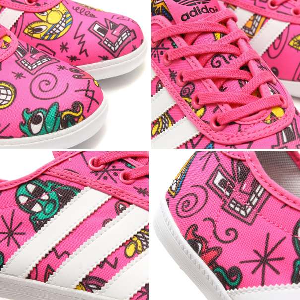 ビビッドなピンクアッパー全面にコミカルなグラフィックが落とし込まれた1足。