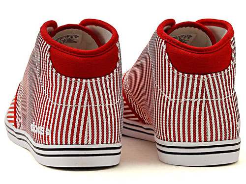 アディダス カジュアルLEミッド (カジュアルLEミッド) G53033 レッド/ホワイト』 キャンバス生地のアッパーにストライプ柄が爽やかで軽快な足元を演出するミッドカットスニーカー。