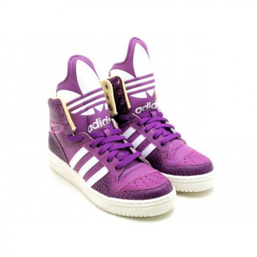M ATTITUDE LOGO W、adidasよりリリースされたバスケットシューズの名作ATTITUDEのビックロゴ ウィメンズモデルとなります。アッパーは鱗のような凹凸加工が施されており、シュータンとヒールにトレフォイルがはいります。インパクトのあるパープルが目を引くかわいい1足です、イチオシです!!