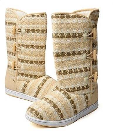 お気に入りのセーターに足を通すような…この「ナハニ・ハイ」はウールニットのアッパー、贅沢な人工ファーのライニングでスポーティーに仕上げたブーツです。脇の開閉部にはトグルをあしらい、またロゴを飾り付けとても可愛い仕上がりです。アッパー素材は合成繊維。アウトソールはゴム底です。