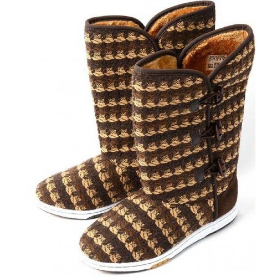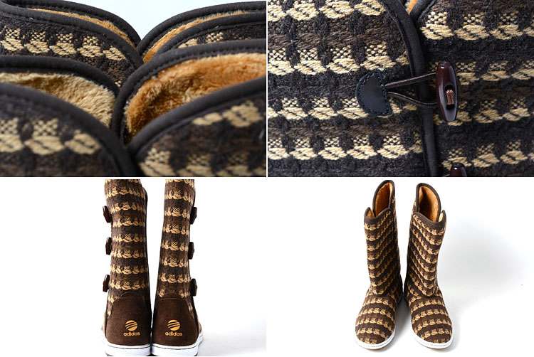 お気に入りのセーターに足を通すような…この「ナハニ・ハイ」はウールニットのアッパー、贅沢な人工ファーのライニングでスポーティーに仕上げたブーツです。脇の開閉部にはトグルをあしらい、またロゴを飾り付けとても可愛い仕上がりです。アッパー素材は合成繊維。アウトソールはゴム底です。