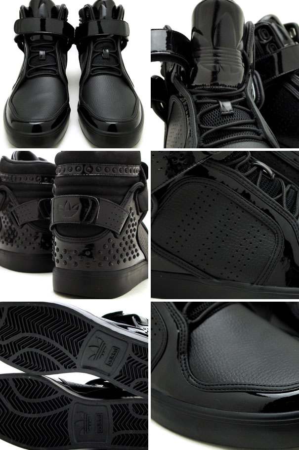 アディダス爆発的な人気を博した第1弾となった「adidas HARDLAND(アディダス ハードランド)」に続き、今作は「adidas Adi-Rise(アディダス アディライズ)」を選択。大胆なハイカットのデザインで、クラシック・近未来的な雰囲気を併せ持つモデルです。パテント、スタッヅ、スムースレザー、メッシュといった異なる素材を巧みに組み合わせ、スタイリッシュなアッパーと、すっきりした軽めのアウトソールが絶妙なバランス。オールブラックのカラーリングとヒールに打ち込んだスタッズなど、エクスクルーシブならではのデザインが際立つ至高の仕上がり。