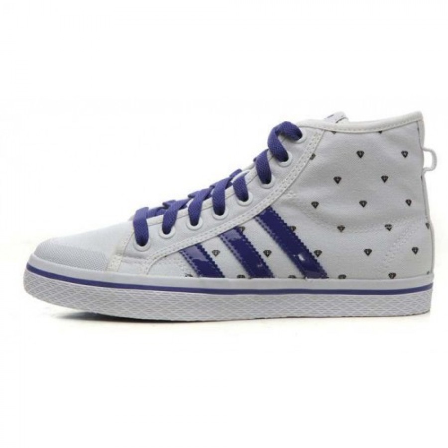 70年代を象徴するバスケットシューズをフェミニンに仕上げた一足に。ここではより流線的で優雅な形状に、エナメルレザーのアッパー全面にダイヤモンドのプリント/履き口にエナメル素材の縁飾り/合成レザーの3ストライプ/メッシュのライニング/ラバー製のカップソールをそれぞれあしらっている。