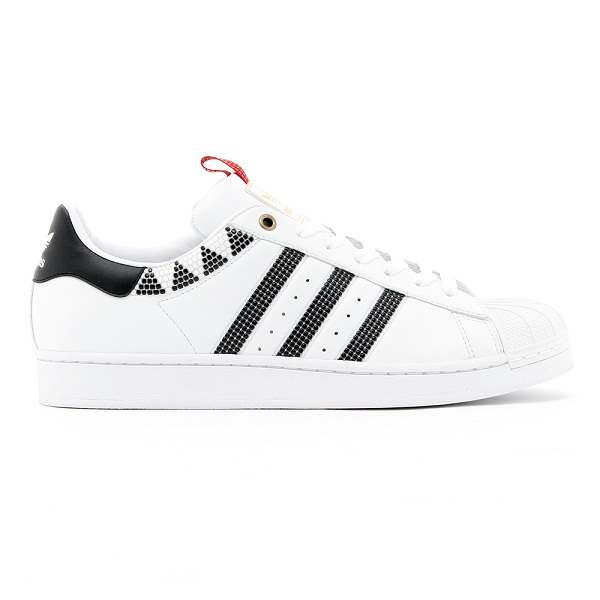 アディダスより、RIPSLIME等で活躍中の【ILMARI】デザインのスーパースターが登場。 コンセプトは【自分が履きたい靴】。自身が好きなトライブ柄を履き口とヒールにデザイン。 シンプルながら素材やデザイン性の高さが際立つ1足となっている。3型展開にて発売。