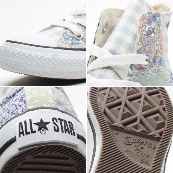 コンバースならではのファッショナブルなレディースライン「CHUCKS SISTERS」のアイテムです。ガーリーな組み合わせが新鮮なパッチワーク仕上げのスイートなオールスターです。花柄、ドット柄、チェック柄など様々な柄をペールカラーでアレンジしています。