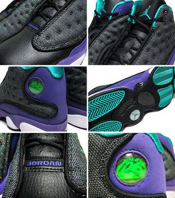 1997年に登場した、パンサーをモチーフにデザインされたAJシリーズ13作目、NIKE AIR JORDAN 13のレディースモデルに話題のNEW COLORが登場!!当時よりその斬新なデザインで話題を博したモデルであるAJ13!!アンクル部に特徴的なホログラムを配し、アウトソールはパンサーの肉球をデザインモチーフにしているなど凝ったディティール、独特のデザインは必見です!!カラーはブラックべースにヴァイオレットカラーを落とし込んだレディースカラーならではの配色が際立つ、通称"Grape"カラー!!海外でも話題沸騰のJORDAN13から限られた店舗でのみリリースされた入手困難なレディースモデルのNEW COLOR。女性の方、この機会に是非!!急げ!!