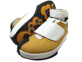 インディペンデントポッド サスペンションというショックスに似た機能を搭載。新感覚の衝撃吸収を実現している。ヒール部分にはエアを搭載。ベルクロ部分にはレーザー加工で、ジョーダンの軌跡を表現している。
