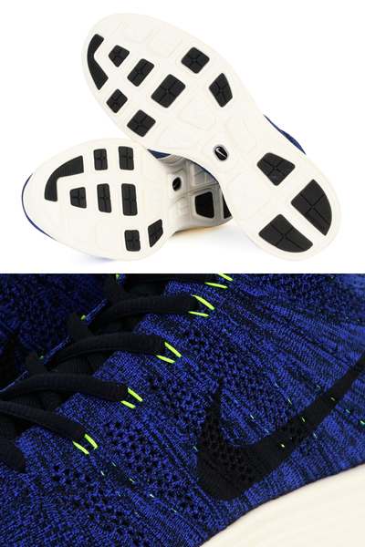 従来のフットウエアの製造方法の常識を覆す「ナイキ フライニット」テクノロジーにより、糸で精密に編み上げられたワンピース構造のアッパーは軽量かつ製造工程における素材のロスを最小限に抑え環境への配慮も忘れない。