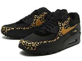 NIKE WMNS NIKE AIR MAX 90です。ブラックボディーにゴールドのレオパード柄をまとったスペシャルな1足!存在感のあるモデルですね!オススメです!