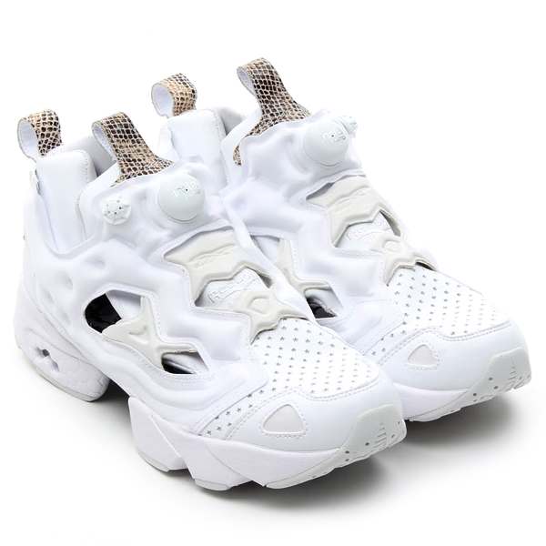 1990年代のハイテクスニーカーブームを「NIKE AIR MAX」と共に支えたReebok屈指の名作ランニングモデル【INSTA PUMP FURY】から、atmos提案カラー 2013FWモデルが登場です。3月にも発売された"PUMP FURY SNAKE CAMO"の第2弾となった今作は、前作と対照的なホワイトバージョンを制作。清潔感のあるオールホワイトのアッパーに、タン・ヒールパーツにはスネーク柄を落とし込み、一見シンプルでありながらも、どこか高貴な雰囲気を漂わせる完成度の高いアイテムに仕上りました。甲部分には特殊なパターンのパンチングを採用し、インソールにはブリティッシュカモがプリントされる等、見えないところにまでこだわりが詰め込まれたatmosらしい1足になっています。