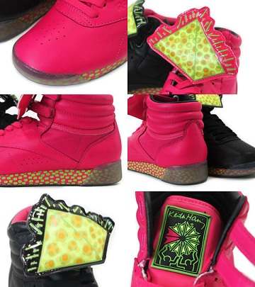 リーボックのフリースタイルをベースに左右別々のカラー、ミッドソールに彼のデザイン、そして何よりタンには、見る角度で絵柄が変わるデザインを施したアクセサリーが付属!