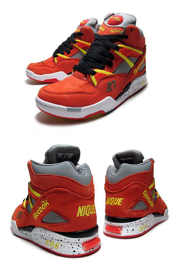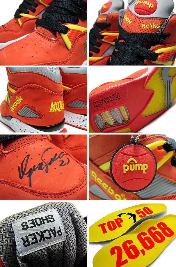 ニュージャージーのパッカー・シューズが別注を掛け、話題となったPUMP OMNI ZONE "Dominique Wilkins"モデルに、さらに限られた足数で制作されたオレンジのFriends & Family Editionが登場!!2010年で20周年を迎えるREEBOK PUMPモデルを有力ショップが味付けをしリリースされているPUMP20周年モデルで、パッカー・シューズが落とし込んだのは、得点能力とダンクで有名なことからヒューマンハイライトフィルムと呼ばれた選手、ドミニク・ウィルキンス!!勿論、PUMP OMNI ZONEと言えば、ドミニク・ウィルキンスで、ATLANTA HAWKS時代にトレードマークとして愛用していた事でも有名です。左足サイドには、彼の背番号"21"。そして、インソールには現役時代のNBA歴代12位の26668得点の"26668"。そして、シュータン裏側には、彼の愛称、"HUMAN HIGHLIGHT FILM"、そして別注を意味する、"PACKER SHOES"のロゴを落とし込んだ特別モデル!!足首をしっかりとサポートするハイカットのシルエットに、補強用のプラスチックパーツやバスケットボールをあしらったポンプシステムなど、90年代のクラシカルなデザインを再現し、PUMP SYSTEMの輝かしい伝統と、歴史に残る斬新で画期的なデザインはREEBOKファンのみならず、全てのスニーカーファンにお勧めする限定モデルです!!