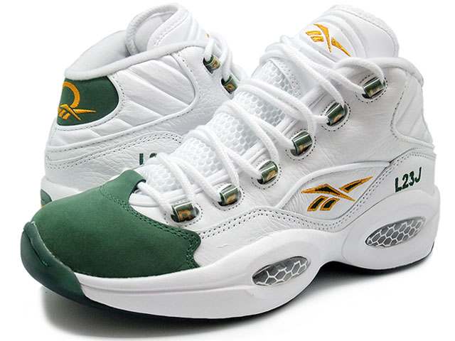 REEBOK QUESTION MID "FOR PLAYER USE ONLY" LEBRON JAMES WHT/SAP GREEN-HRVST GREEN リーボック クエスチョン ミッド "レブロン・ジェームズ" 白緑黄 V53579
